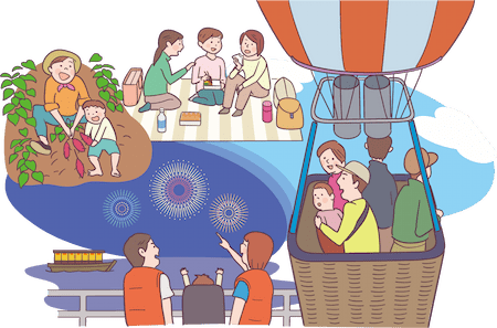 熱気球体験では、呼吸器を使用している子どもたちも、家族や支援者とともに空からの景色を楽しみました。花火大会では釣り船を貸し切り、海の上から花火を見上げる特別な夜を過ごしました。