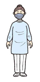 エプロン・ガウンは、おむつ交換、陰部洗浄、吸引、汚れた器材や物品等の洗浄時などに着用します。衣服に飛び散りそうな程度を予測して、エプロンあるいはガウンを選択します。